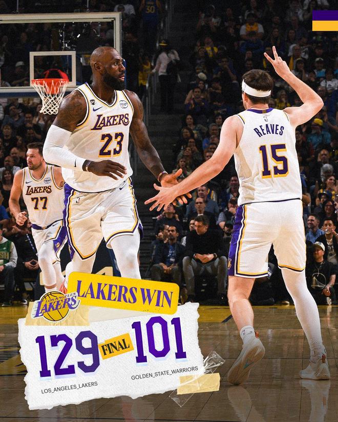 湖人队的东契奇得到26分、6个篮板和8次助攻,勒布朗得到22分、7个篮板和9次助攻,里夫斯得到18分,肯纳德得到16分,拉拉维亚得到15分和5个篮板,艾顿得到4分和10个篮板。勇士队的桑托斯得到14分和4个篮板,穆迪得到12分、3个篮板和3次助攻,佩顿得到12分,梅尔顿得到10分和4次助攻。